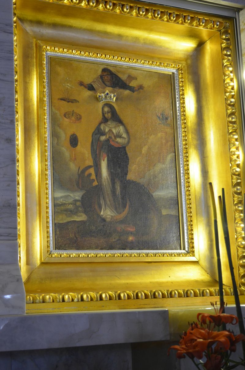W ołtarzu głównym znajduje się cudowny obraz Matki Boskiej Niepokalanie Poczętej pochodzący z Tartakowa. Obraz namalowany został na początku XVII w. z przeznaczeniem do kaplicy Potockich w Tartakowie. Jak podają archiwa w dniach 9-24 marca 1765 r. z oczu Matki Boskiej wyciekały krwawe łzy. W 1944r. w związku z zagrożeniem kościoła siostry Służebniczki przewiozły obraz do domu generalnego w Dębicy. W roku 1965 obraz umieszczony został w ołtarzu głównym kościoła parafialnego w Łukawcu. Następnie podjęto starania o zgodę na koronację obrazu, której dokonał Jan Paweł II w dniu 3 czerwca 1991 r.